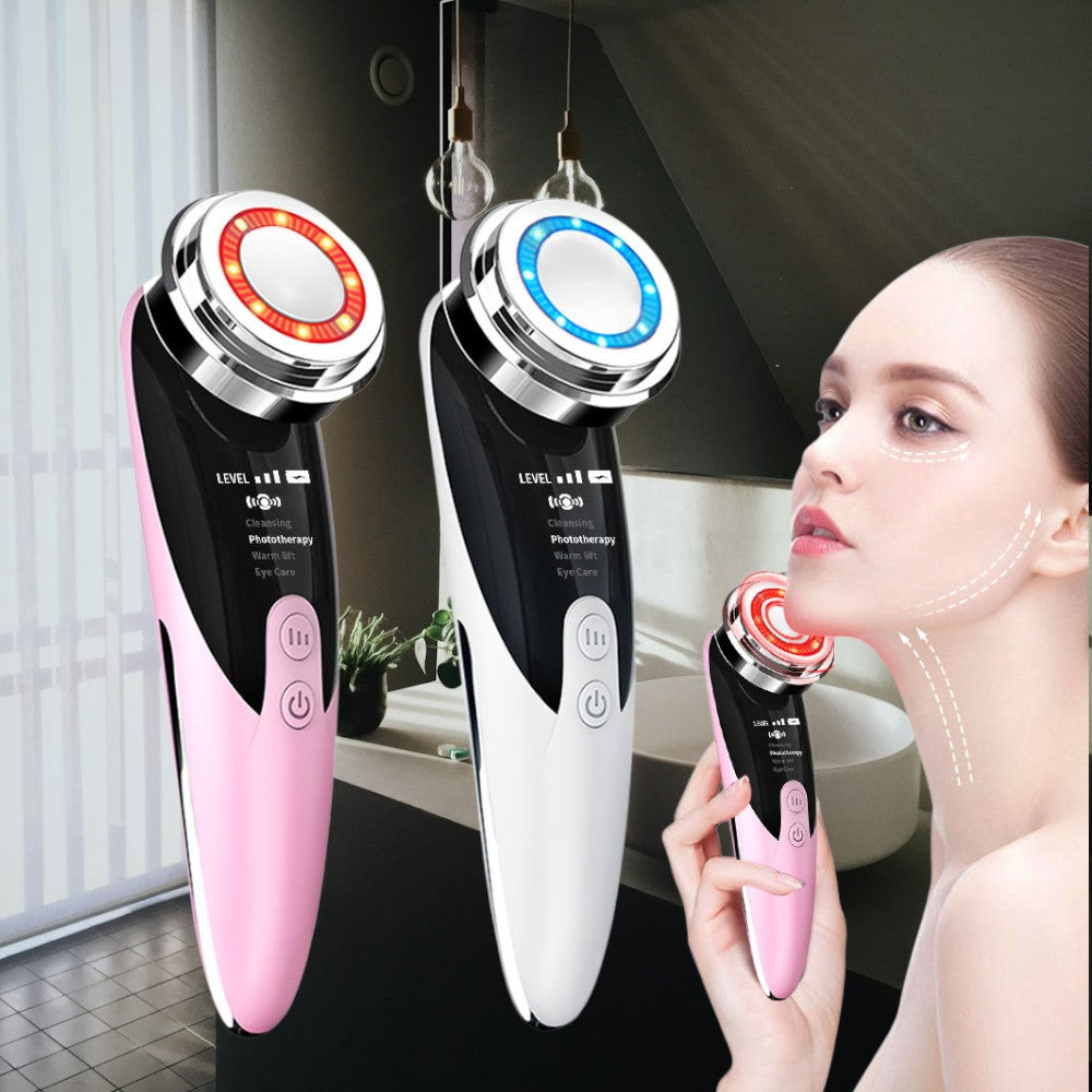 Ce dispositif facial portable combine microcourant, chaleur, vibration, luminothérapie LED, iontophorèse et massage pour lifter, raffermir et rajeunir la peau à domicile. Il stimule la régénération du collagène, améliore l’élasticité cutanée, réduit ridules et plis nasogéniens, tout en optimisant la pénétration des soins. En revitalisant la circulation sanguine, il redonne éclat et hydratation aux peaux fatiguées, resserre la mâchoire et limite le relâchement pour un visage visiblement renforcé et rajeuni.
